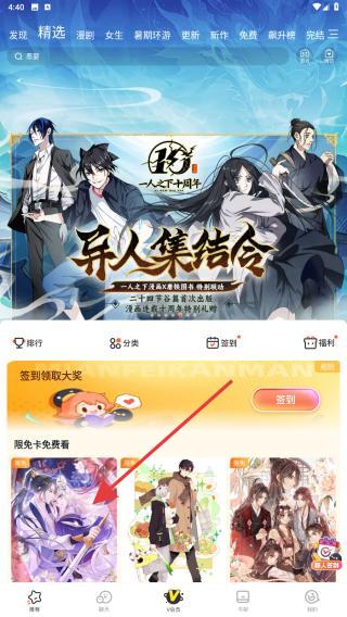1、進(jìn)入騰訊動漫App首頁,在精選板塊中,點擊想要查看評論的漫畫封面。