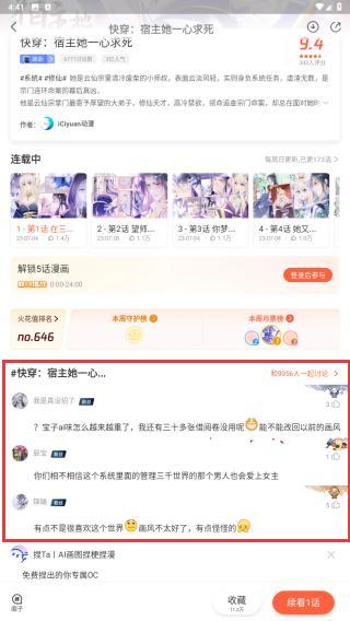 3、進(jìn)入詳情頁面,向下滑動可查看其他讀者的留言、討論。