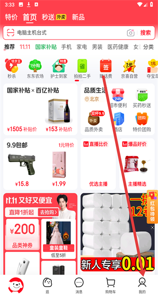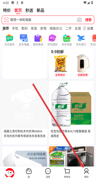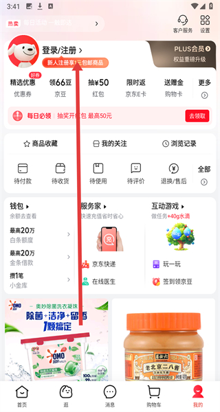 1、在京東APP首頁點擊右下角“我的”,進入個人中心頁面。