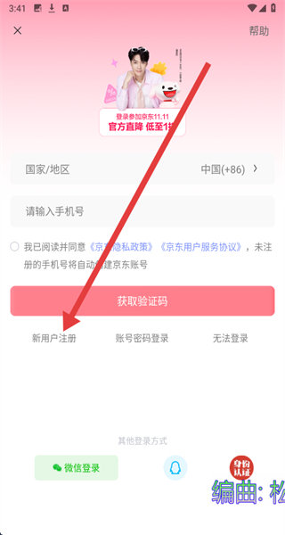 3、在登錄注冊頁面點擊“新用戶注冊”,進入手機快速注冊頁面。