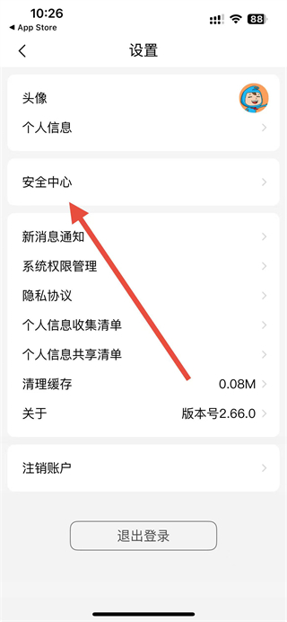 2、在設(shè)置頁(yè)面,點(diǎn)擊安全中心選項(xiàng),進(jìn)入安全中心頁(yè)面。