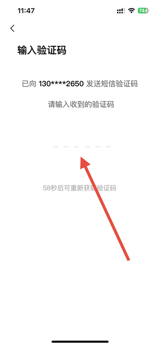 4、進(jìn)入輸入驗(yàn)證碼頁(yè)面后,填寫手機(jī)收到的短信驗(yàn)證碼,完成驗(yàn)證即可繼續(xù)完成賬號(hào)注冊(cè)。