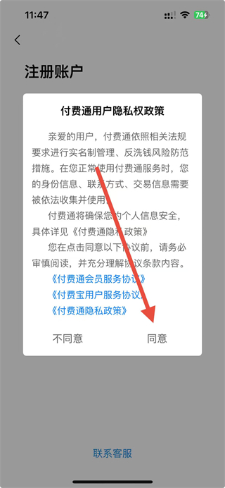 3、在彈出的付費(fèi)通用戶隱私權(quán)政策窗口中,點(diǎn)擊同意按鈕。