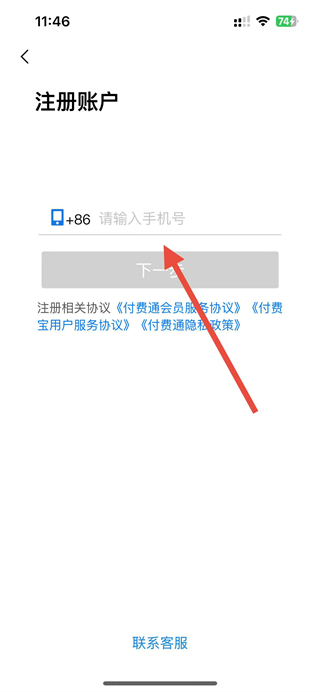 2、進(jìn)入注冊(cè)賬戶頁(yè)面后,在對(duì)應(yīng)輸入框填寫要綁定的手機(jī)號(hào)。
