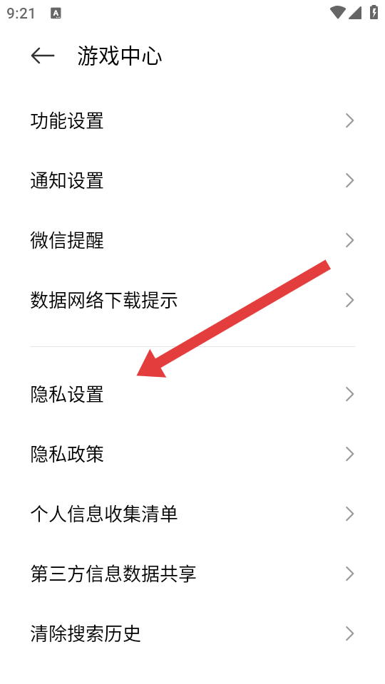 2、在游戲中心的設(shè)置頁(yè)面里,需要點(diǎn)擊隱私設(shè)置的選項(xiàng),進(jìn)入隱私設(shè)置的界面。