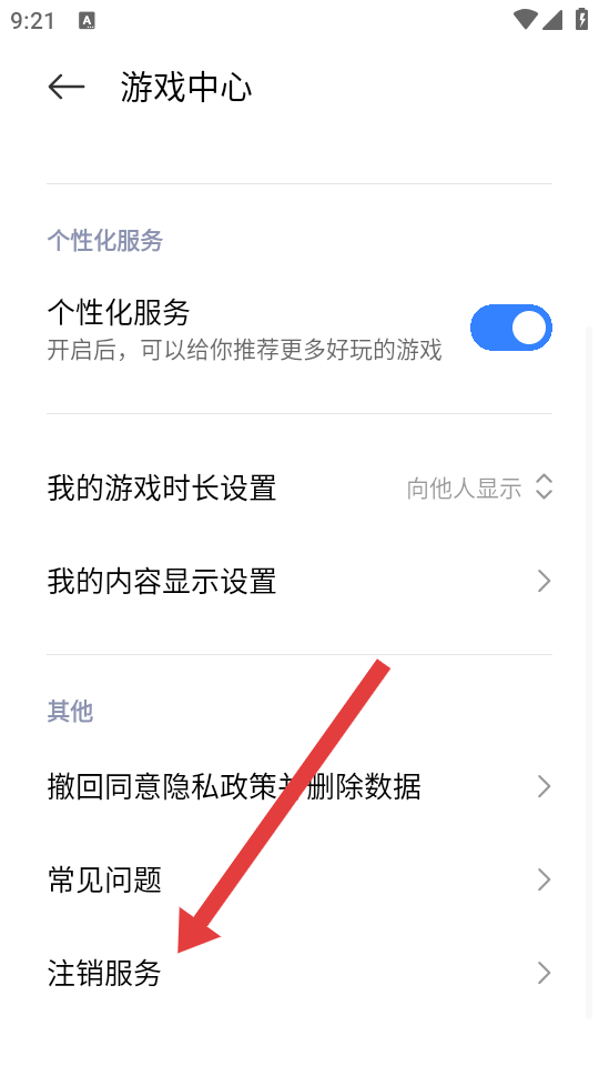 3、在隱私設(shè)置的界面中,點(diǎn)擊注銷(xiāo)服務(wù)的選項(xiàng),然后進(jìn)入注銷(xiāo)服務(wù)的頁(yè)面。