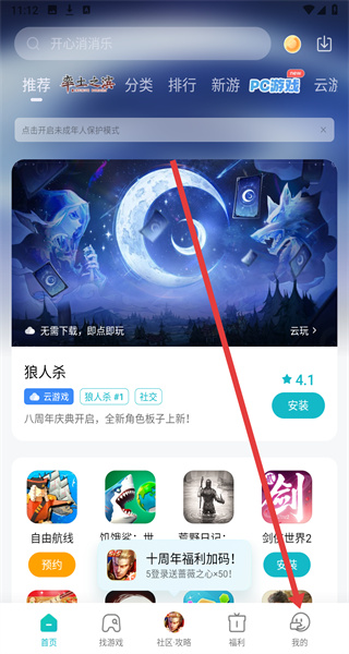 1、在進(jìn)入到小米游戲中心首頁(yè)中,可以點(diǎn)擊我的按鈕,進(jìn)入我的主頁(yè)。