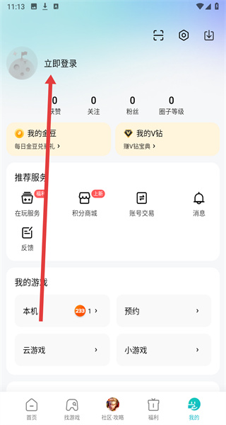 2、在進(jìn)入到我的主頁(yè)后,可以點(diǎn)擊上方立即登錄按鈕,進(jìn)行登錄操作。