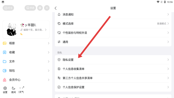 2、在設(shè)置的右側(cè)中,找到并點(diǎn)擊隱私設(shè)置選項(xiàng),進(jìn)入設(shè)置。