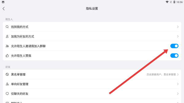 3、在隱私設(shè)置頁面中,可以點(diǎn)擊按鈕進(jìn)行開關(guān)設(shè)置操作。