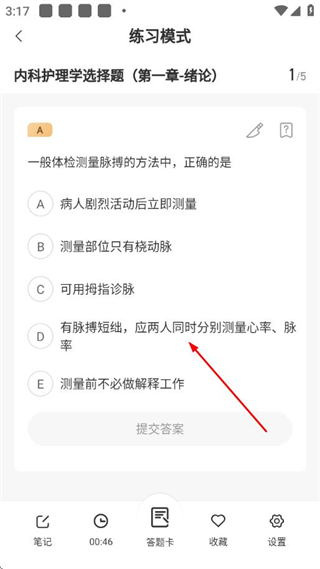 4、進(jìn)入練習(xí)模式頁(yè)面,選擇題目選項(xiàng)后可進(jìn)行答題操作。