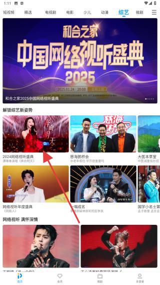 2、在綜藝專區(qū)中,點(diǎn)擊想要觀看的綜藝封面,如:2024中國網(wǎng)絡(luò)視聽年度盛典。