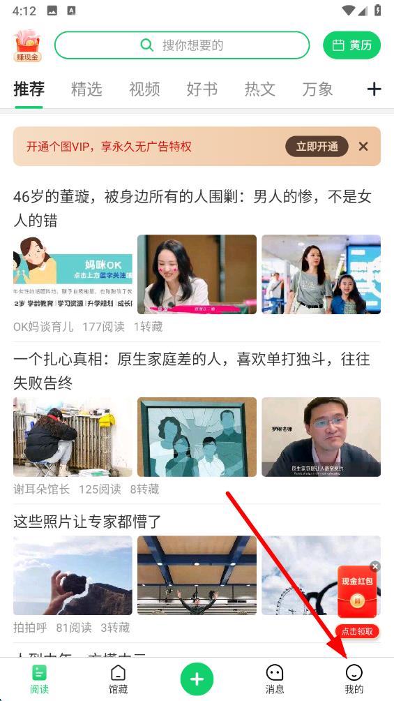 1、在個人圖書館閱讀頁面,點擊右下角我的選項,進(jìn)入個人頁面。