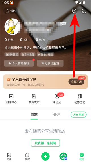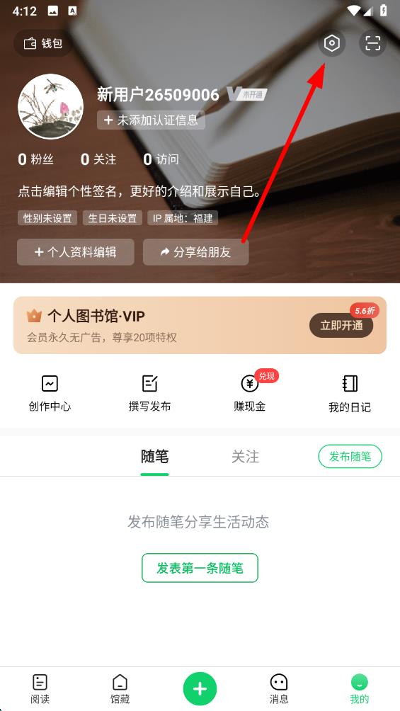 2、在個人頁面,點擊右上角設(shè)置圖標(biāo),進(jìn)入設(shè)置頁面。