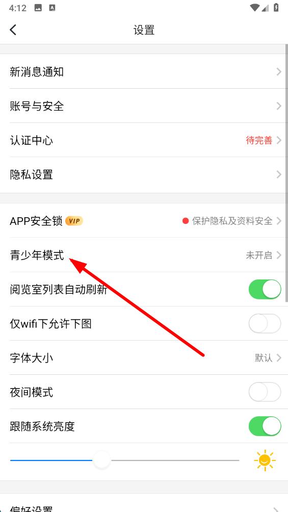 3、在設(shè)置頁面里,找到青少年模式選項并點擊進(jìn)入。