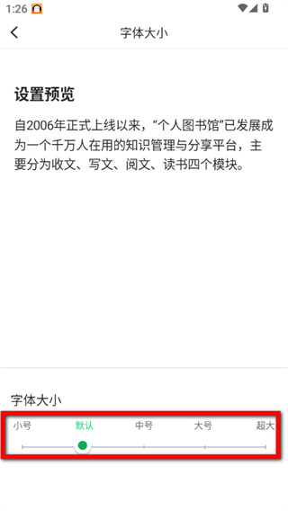 4、在字體大小設(shè)置界面,可選擇字體大小,選擇后即可完成設(shè)置。