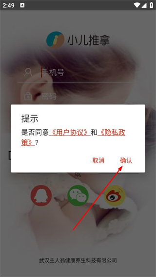 2、在彈出的提示框中,點(diǎn)擊確認(rèn)同意用戶協(xié)議和隱私政策。