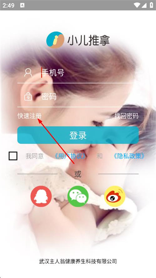 1、打開主人翁健康A(chǔ)PP,在登錄頁面點(diǎn)擊快速注冊(cè)。