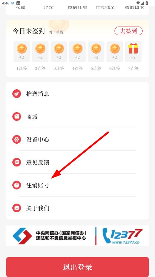 2、在個人頁面中,向下滑動找到并點擊注銷賬號選項。