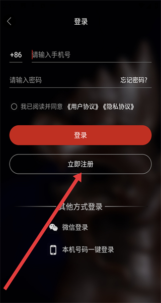 3、登錄頁面點擊“立即注冊”,進入注冊界面。
