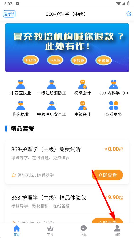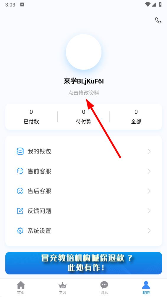 1、打開來學(xué)寶典app,點(diǎn)擊底部導(dǎo)航欄最右側(cè)我的選項(xiàng),進(jìn)入個(gè)人相關(guān)界面。