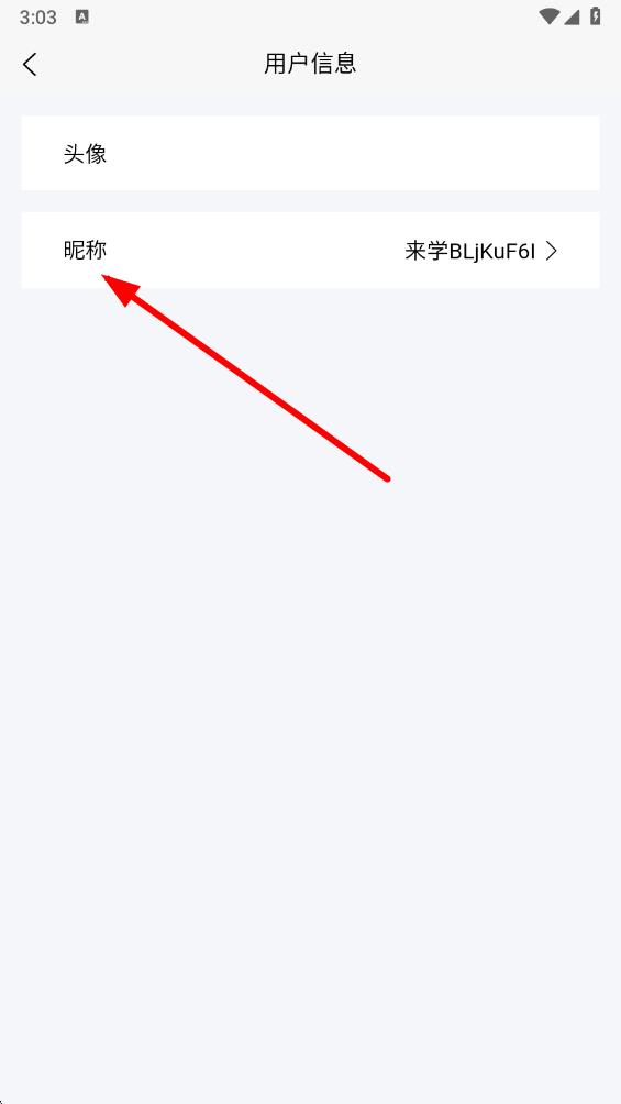 3、在用戶信息頁面里,點(diǎn)擊昵稱選項(xiàng)并點(diǎn)擊。
