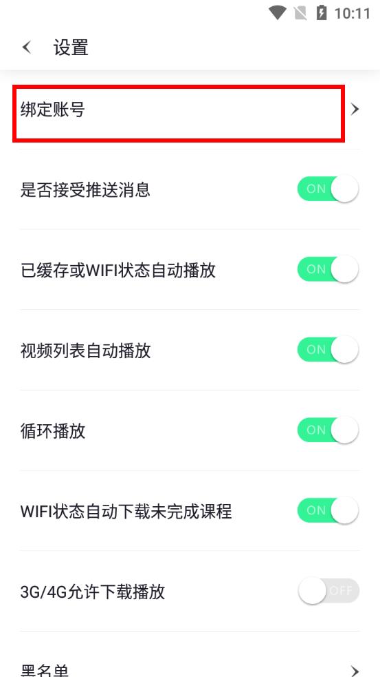 3、在設(shè)置界面中,找到綁定賬號(hào)選項(xiàng),點(diǎn)擊進(jìn)入綁定賬號(hào)界面。
