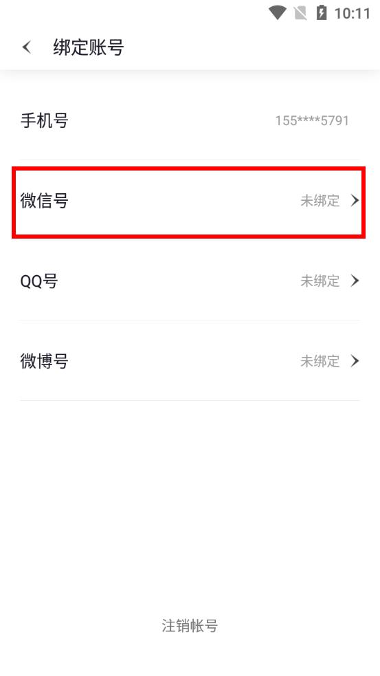 4、在綁定賬號(hào)界面點(diǎn)擊微信號(hào)一欄,按提示完成微信綁定操作。