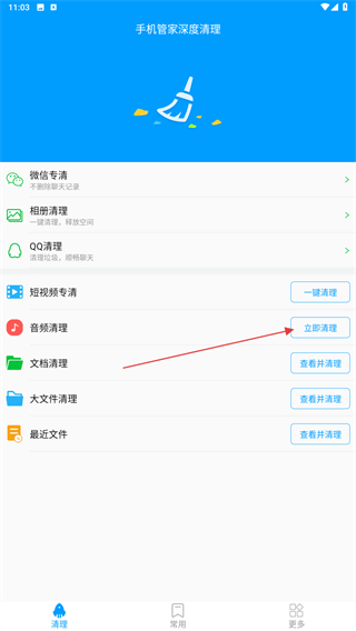 2、在首頁內(nèi),找到音頻清理并點擊右側(cè)立即清理的按鈕。