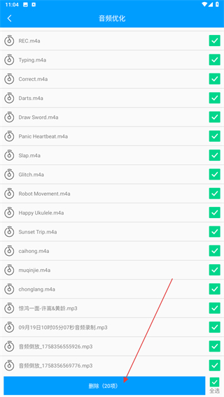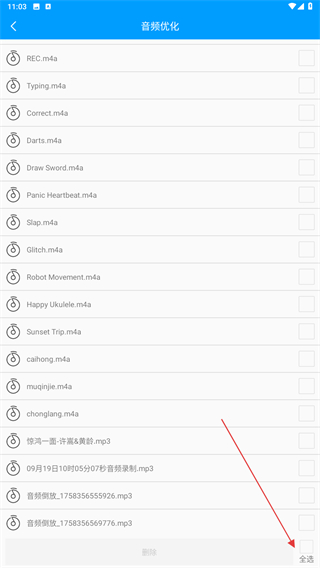 3、在音頻優(yōu)化的頁面內(nèi),點擊右下角全選的按鈕。