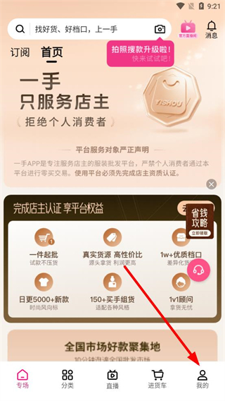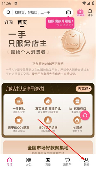 1、打開一手服裝批發(fā)app,點(diǎn)擊底部導(dǎo)航欄我的。