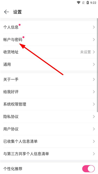 3、在設(shè)置界面中,點(diǎn)擊帳戶與密碼選項(xiàng),進(jìn)入賬號(hào)與密碼管理頁面。