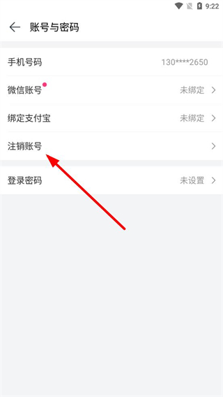 4、在賬號(hào)與密碼頁面,點(diǎn)擊注銷賬號(hào)選項(xiàng),進(jìn)入注銷賬戶頁面。