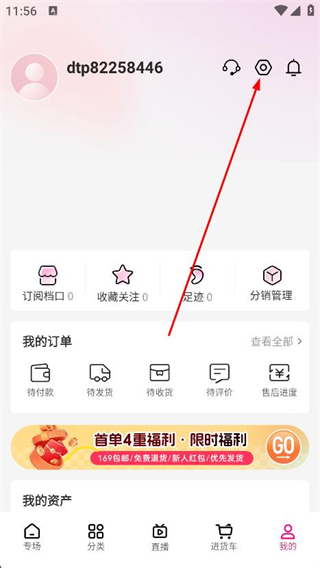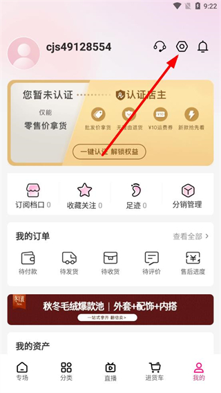 2、在我的頁面,找到并點(diǎn)擊右上角的設(shè)置圖標(biāo)。