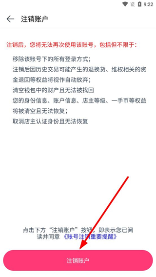 5、在頁面閱讀相關(guān)提醒后,點(diǎn)擊注銷賬戶按鈕即可完成注銷。