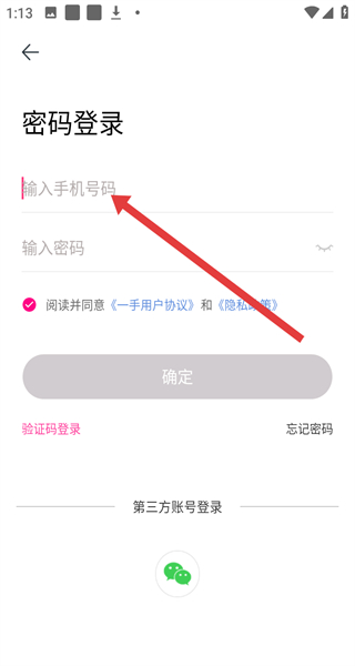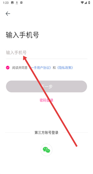 3、在跳轉(zhuǎn)到手機(jī)號(hào)登錄頁面中,可以點(diǎn)擊輸入框填寫手機(jī)號(hào)后進(jìn)入下一步。
