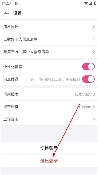 3、在設(shè)置頁面,下滑點(diǎn)擊下方的退出登錄選項(xiàng)。