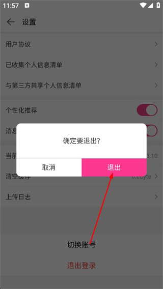 4、在彈出的確認(rèn)框中,點(diǎn)擊退出即可退出登錄。