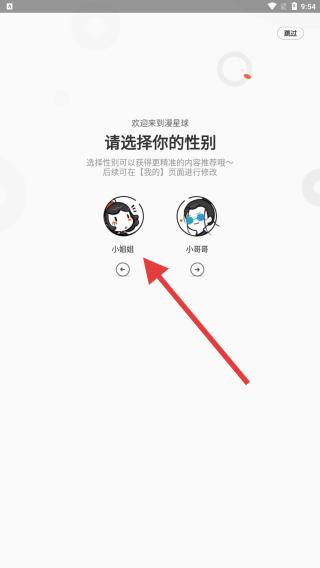 1、畫面呈現(xiàn)了軟件初始的頁面,用戶需要在此頁面選擇你的性別,能夠更精準(zhǔn)的推薦想看的內(nèi)容哦。