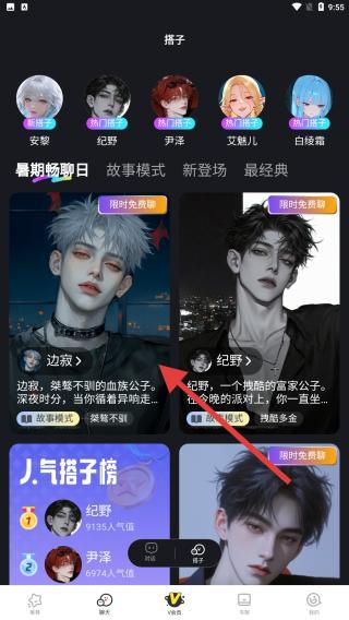 3、點(diǎn)擊聊天的頁面時,會跳出陪你一起看漫畫的聊天搭子,在上方比較經(jīng)典的ip角色內(nèi)進(jìn)行選擇。