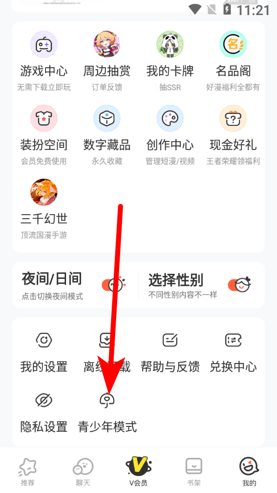 2、在個人界面,點(diǎn)擊青少年模式選項(xiàng),進(jìn)入青少年守護(hù)模式頁面。