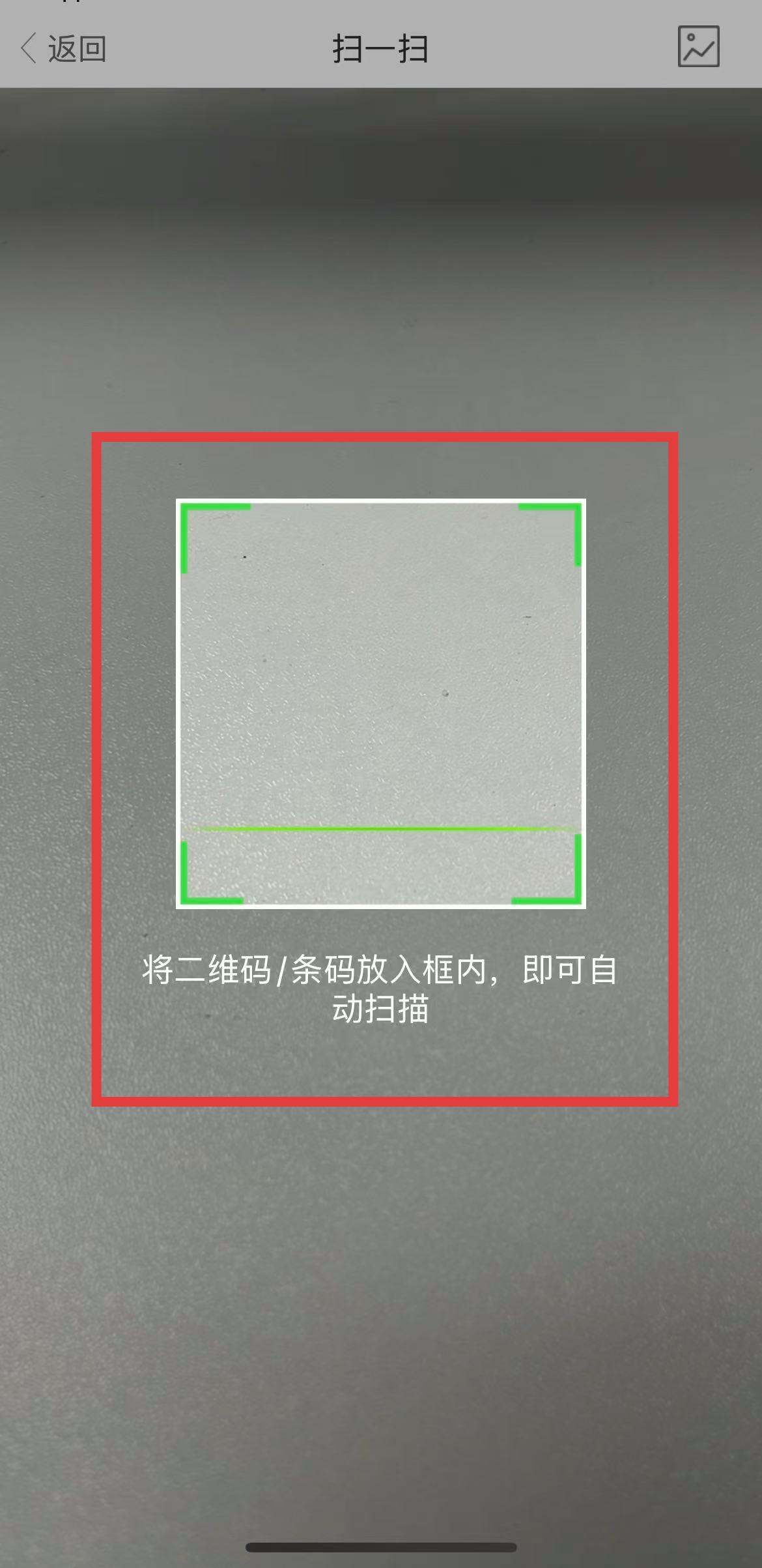 3、進入掃碼界面后,將需要掃描的二維碼或者條碼放入屏幕中間的綠色掃描框內(nèi),APP會自動識別并完成掃碼操作,獲取相關(guān)信息。