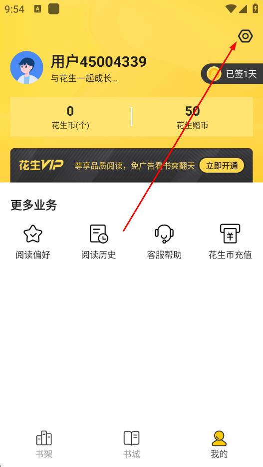 2、在我的頁(yè)面,點(diǎn)擊右上角的設(shè)置圖標(biāo)。