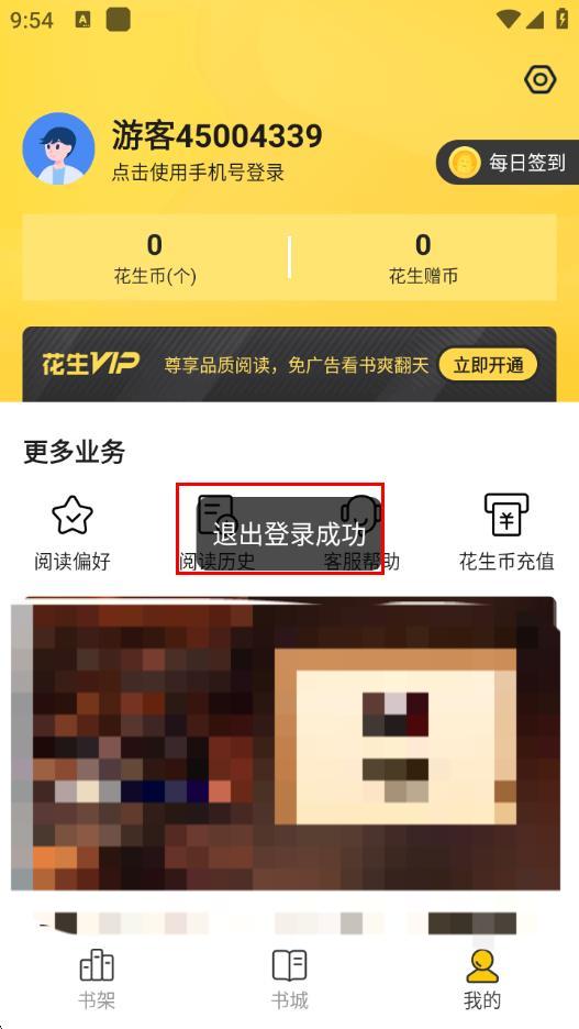 4、完成操作后,頁(yè)面會(huì)顯示退出登錄成功,即成功退出花生小說(shuō)的登錄狀態(tài)。