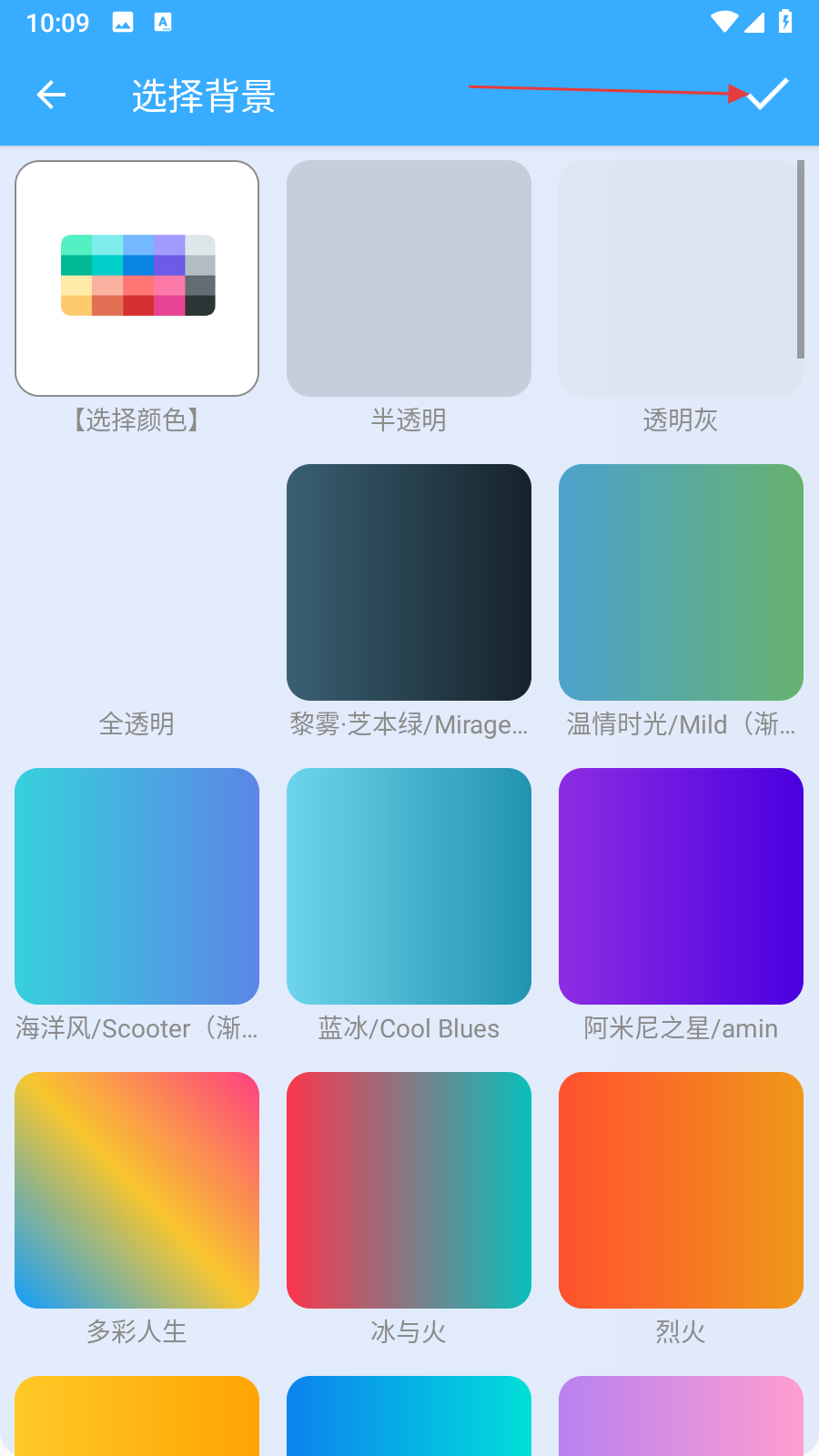 4、在選擇背景頁面,挑選喜歡的背景顏色或樣式,然后點擊右上角的對勾圖標,即可完成背景顏色的更改。
