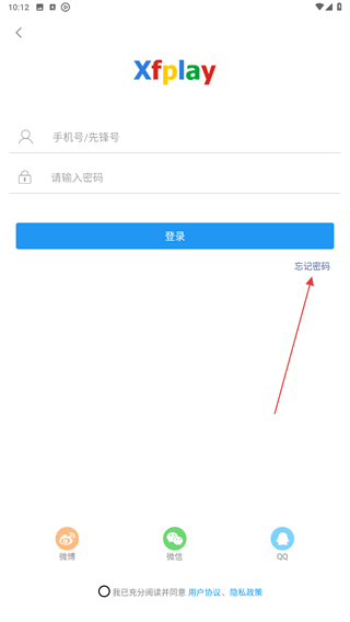 3、進(jìn)入登錄的頁面內(nèi),點擊登錄下方的忘記密碼的按鈕。
