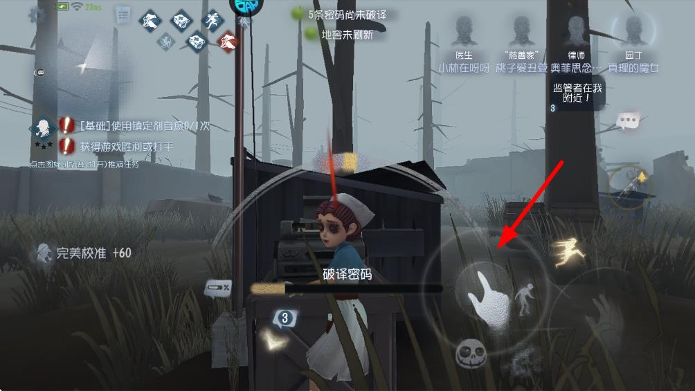 這個人物的作用是在遇到屠夫可以逃跑,點(diǎn)右上角的魔杖,可以在原地留下一個殘影,逃脫或者救隊(duì)友,并且會給一定時間的顯示屠夫的位置。