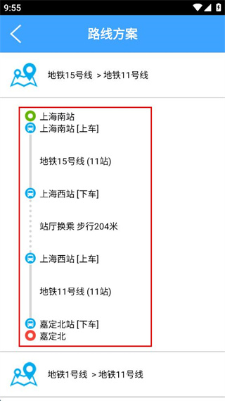 4、查看生成的路線方案,可獲取包含地鐵線路站點(diǎn)及換乘方式的詳細(xì)出行指引。