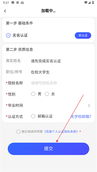 4、先完成實(shí)名認(rèn)證,然后填寫(xiě)資質(zhì)信息,點(diǎn)擊提交。