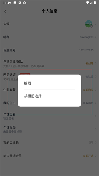 4、選擇拍照或從相冊(cè)選擇圖片,完成頭像更換操作。